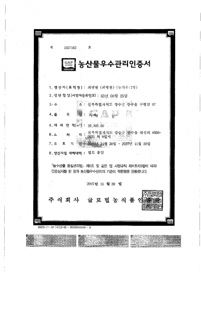 GAP (농산물 우수관리인증서) 인증 사과 입니다..